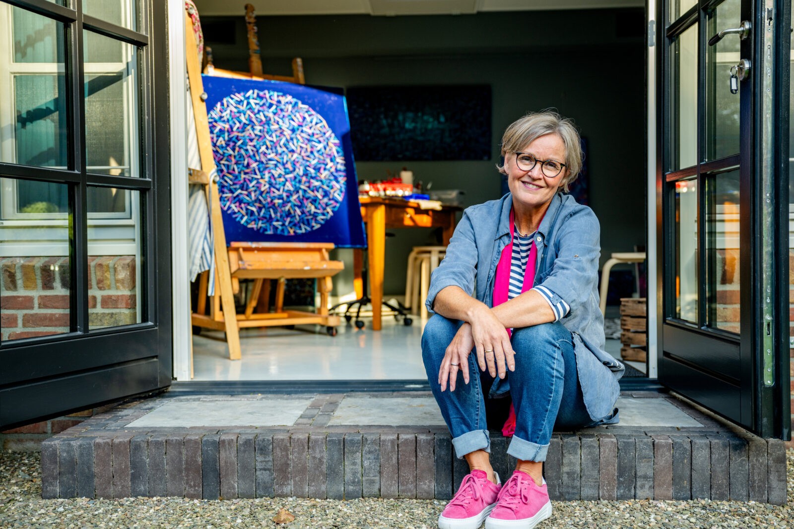 Alma maakt abstracte schilderijen, die komen vanuit haar gevoel. Hierbij maakt ze gebruik van allerlei voorwerpen om de acrylverf op het canvas-doek te krijgen, een kwast zal ze niet gauw gebruiken.