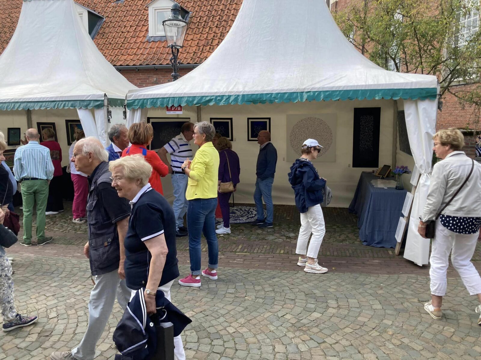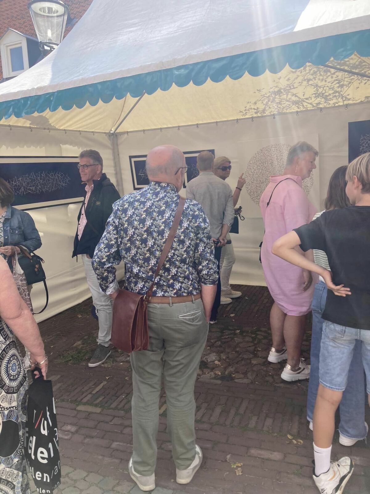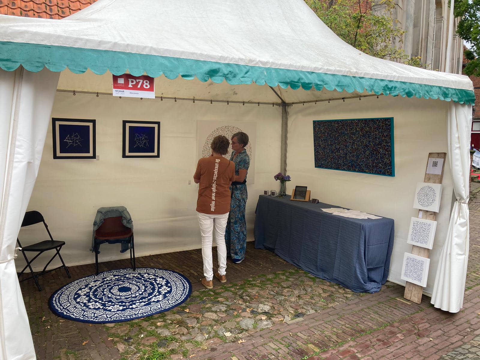 Zoveel mensen die de kunstmarkt bezocht hebben. Vrienden, kennissen, kunstenaars (o.a. Tom de Jong, metalen torso’s), galeriehouders en onbekenden waarmee het een heel gezellig weekend werd. En niet te vergeten de medekunstenaars, mijn buurvrouw Anouk en de overbuurvrouw van nr 22 aan de Ganzenmarkt en haar partner die zeer behulpzaam waren. Dank jullie wel!