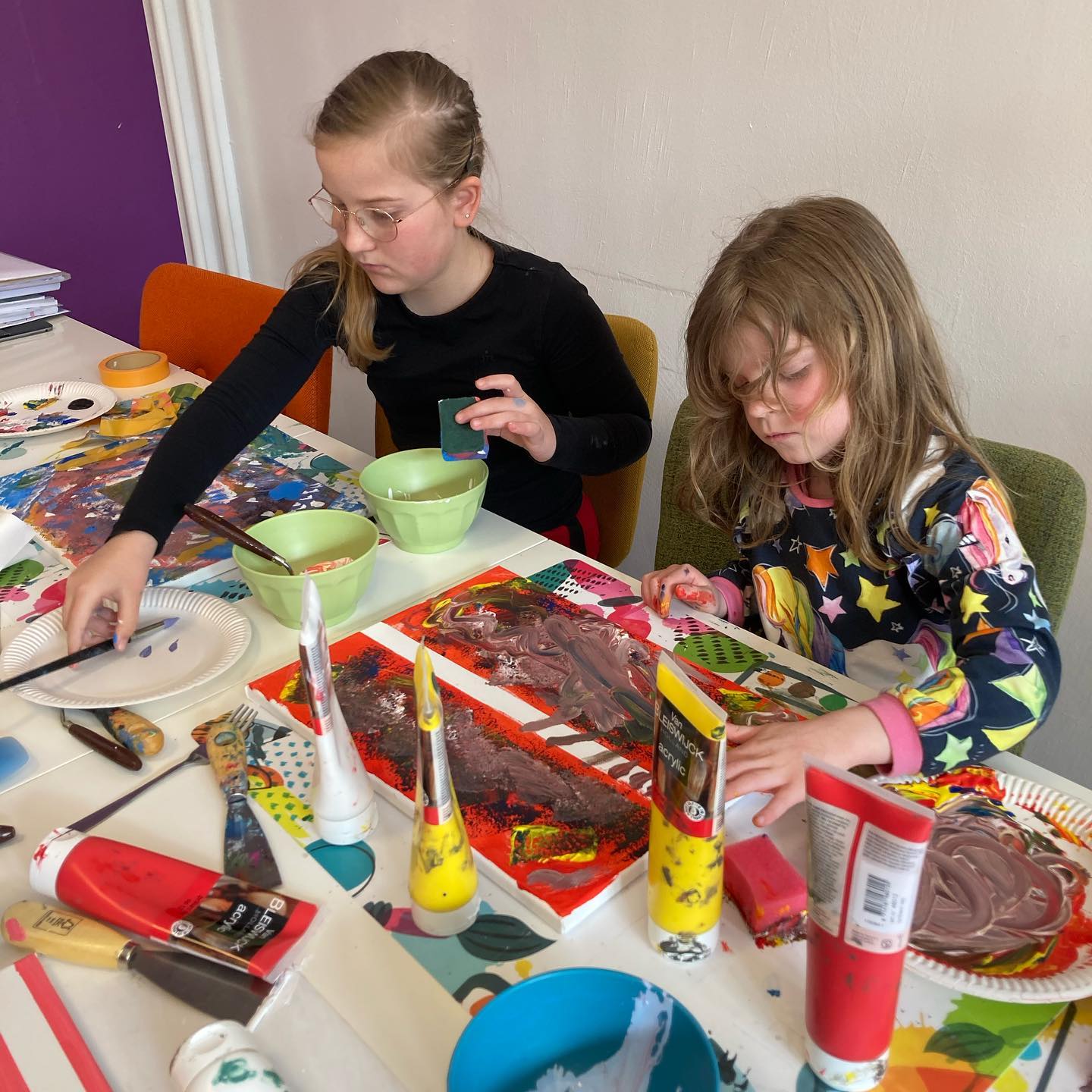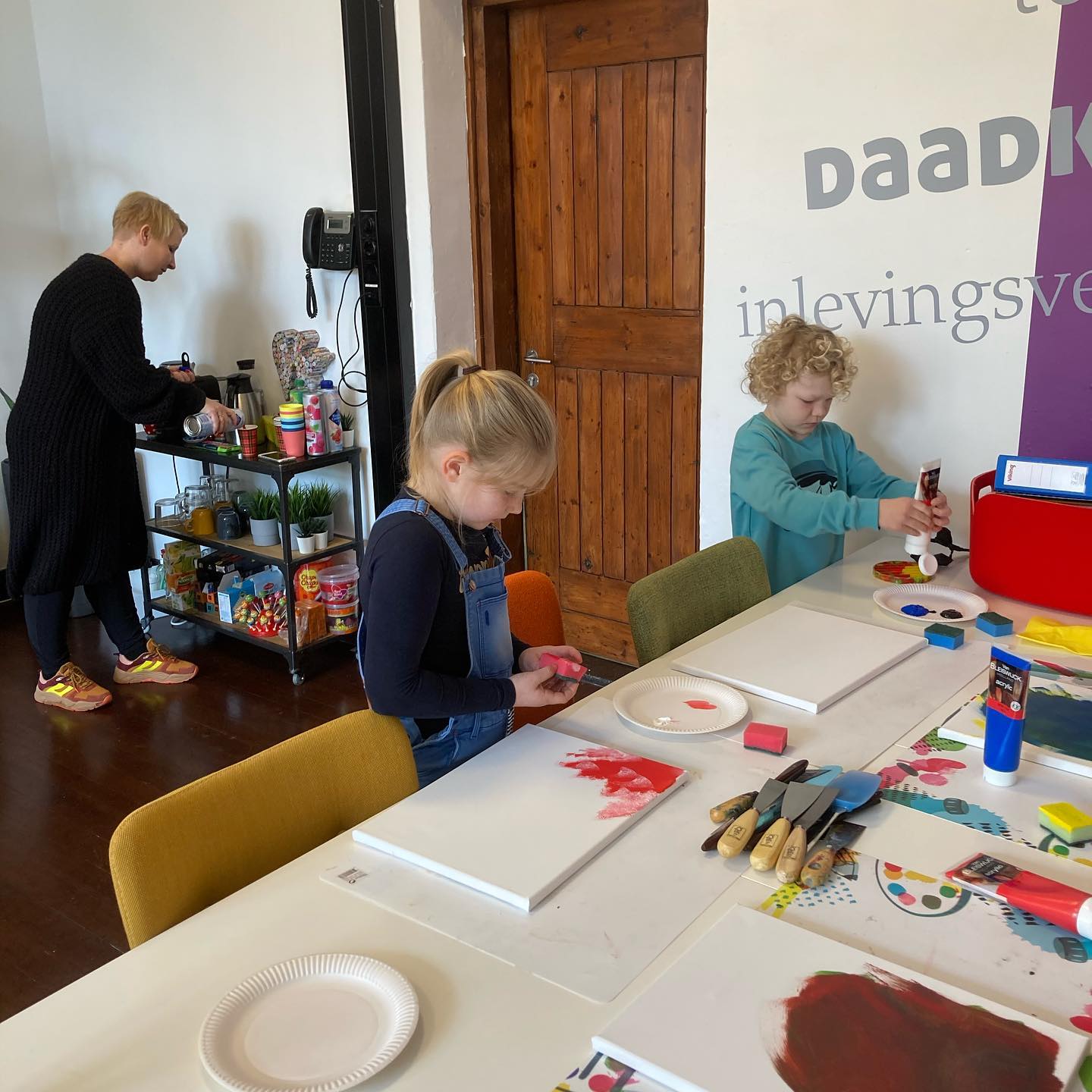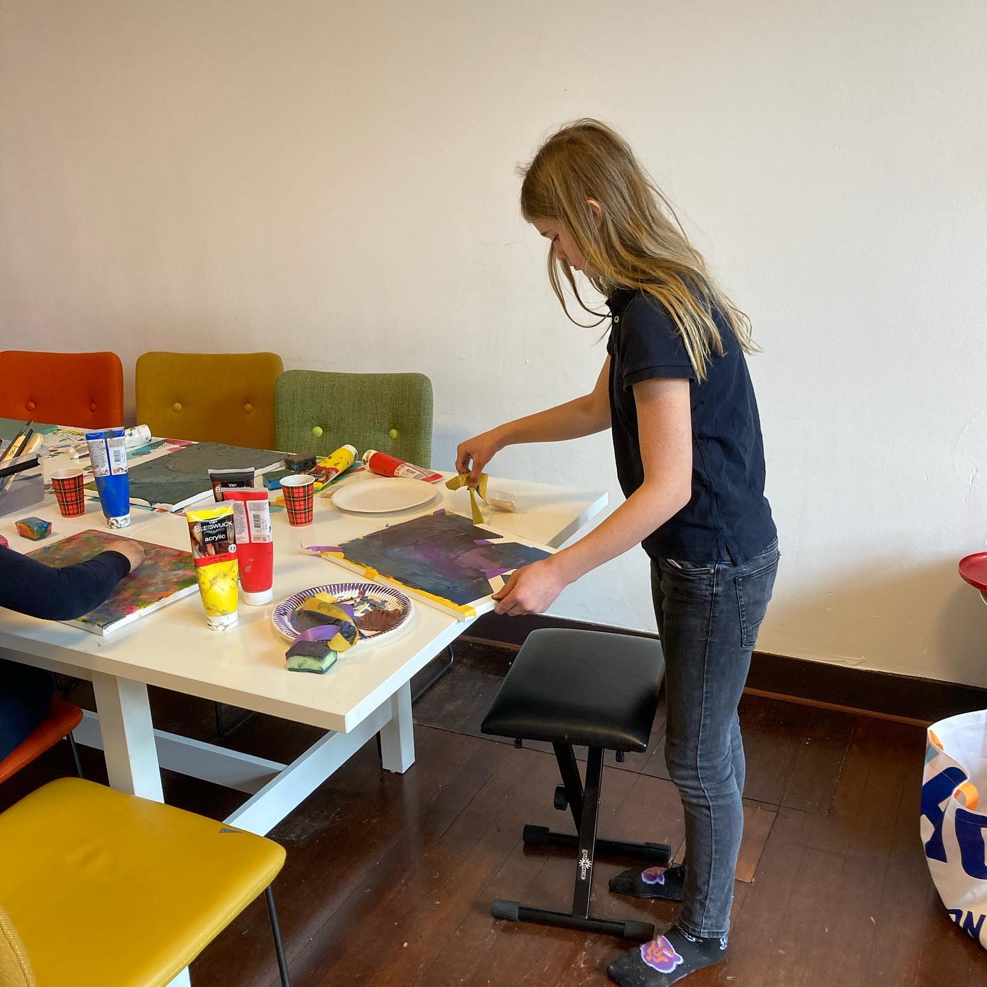 Wat was het mooi Marloes om met de kinderen van Pienter &Co te mogen gaan schilderen. “Loslaten” was de uitdaging die sommigen niet zo gemakkelijk vonden. Om gaandeweg te zien dat het de meeste kinderen toch lukte om buiten hun comfortzone te gaan, en dus te gaan voelen in plaats van denken, was prachtig. Schilderen in een kleur die steeds veranderde, tot een schilderij dat van heel strak toch ineens onverwacht overal stippen kreeg op plaatsen die niet van tevoren exact te bepalen zijn. Ik heb er van genoten om de veranderingen bij de kinderen te zien en van hun te horen.