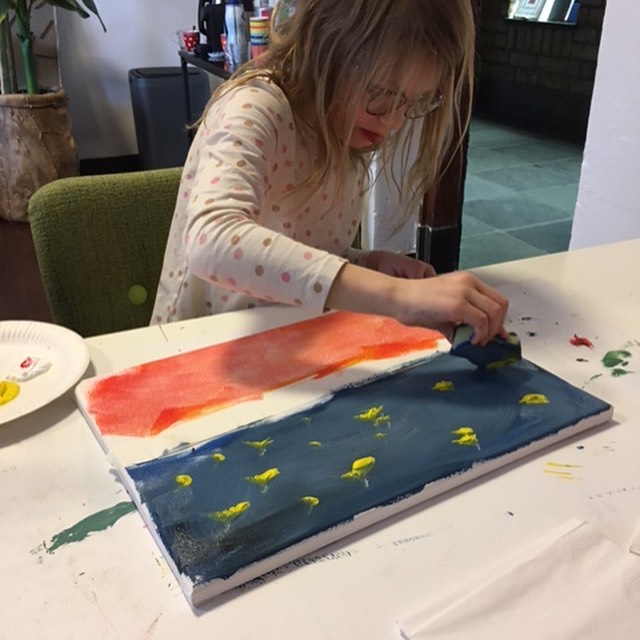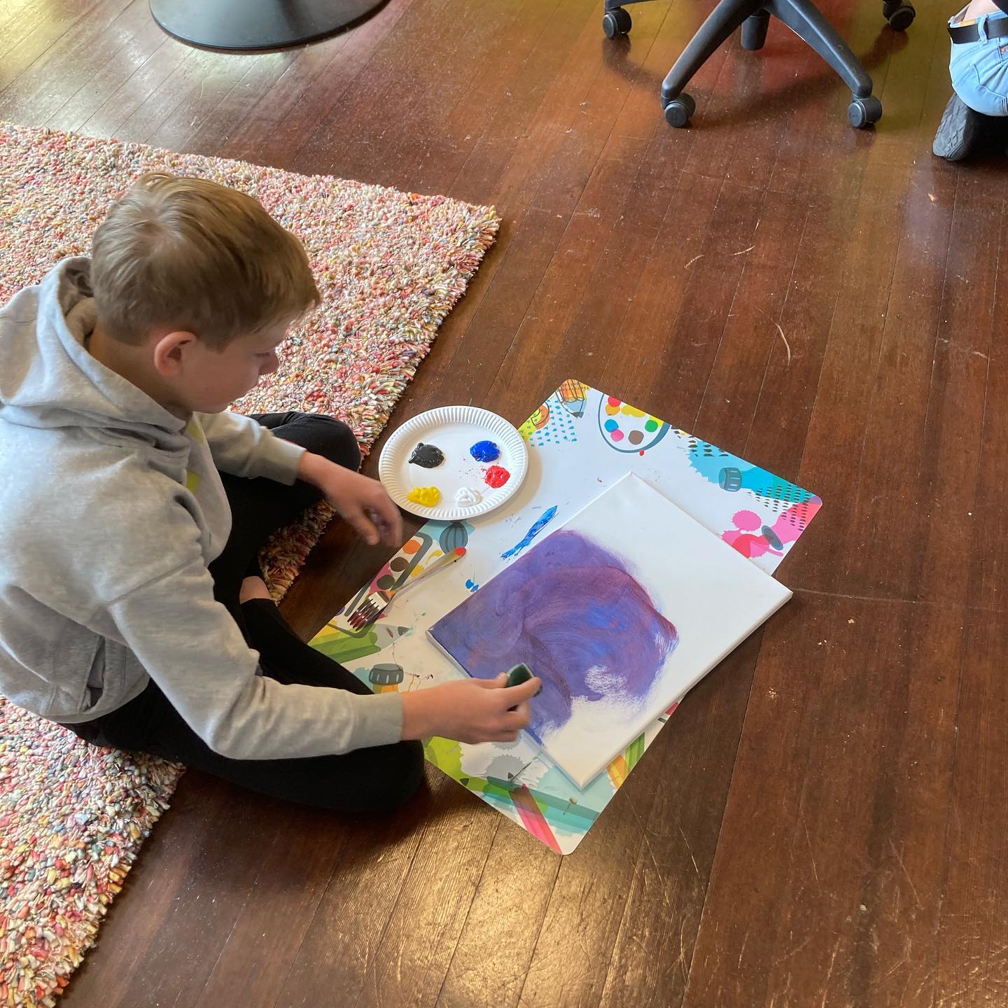 Ik vond het schilderen heel leuk. Eerst vond ik het een beetje spannend, ik was bang om met mijn vingers te verven. Toen ik het eenmaal deed, vond ik het heel leuk.